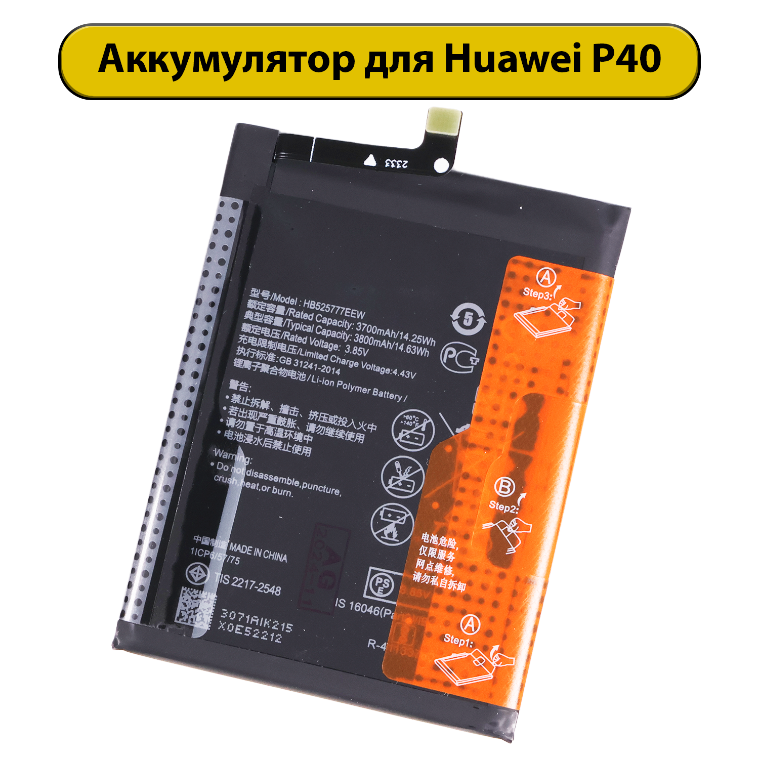 Аккумулятор для Huawei HB525777EEW P40 является важным компонентом для обеспечения стабильной работы вашего устройства. С емкостью 3800 mAh он предназначен для длительной работы вашего смартфона без необходимости частой подзарядки. Этот аккумулятор разработан для использования в моделях Huawei P40, обеспечивая надежное питание для всех функций устройства.